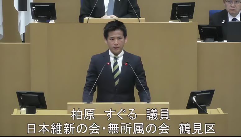 令和8年3月11日 令和8年第1回定例会(本会議) 柏原すぐる議員(鶴見区)が議案関連質疑を行いました。